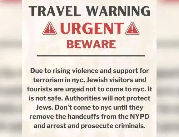 Due to rising violence and support for terrorism in NYC, the Betar Organization is urging Jews not to visit the city 'until they remove the handcuffs from the NYPD and arrest and prosecute criminals.'